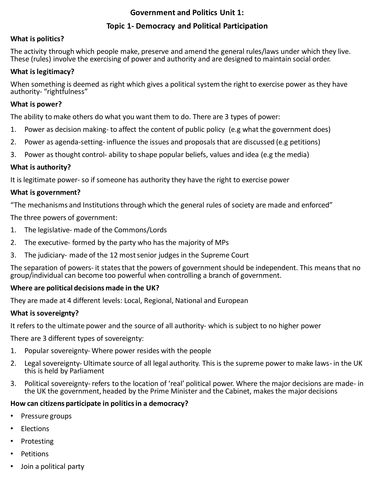 Participation in government worksheets