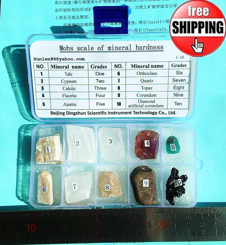 en.wikipedia.org › wiki › Mohs_scale_of_mineral_hardnessMohs scale of mineral hardness - Wikipedia Mohs hardness kit, containing one specimen of each mineral on the ten-point hardness scale The Mohs scale of mineral hardness ( / m oʊ z / ) is a qualitative ordinal scale , from 1 to 10, characterizing scratch resistance of various minerals through the ability of harder material to scratch softer material.