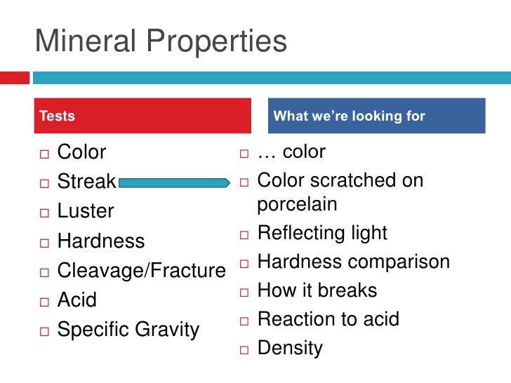 Glad You Asked: How Do Geologists Identify Minerals ... A streak test is accomplished by rubbing the mineral on a porcelain plate, also known as a streak plate. The color of the streak left by the mineral is sometimes different from the color of the mineral itself. A streak test comes in handy when identifying minerals such as hematite. Hematite can be found in various colors from black to red, but ...