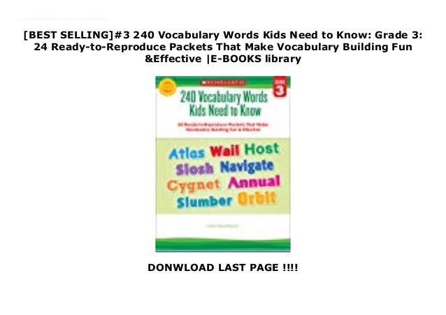 15 English Vocabulary Words with Multiple Meanings A number of English words are spelled the same way and pronounced the same way, but have different meanings. The other meaning for the word buckle is to collapse, especially under a lot of weight or pressure. For example, a person's legs might buckle if they faint (become unconscious). 240 Vocabulary Words Kids need to know. Grades 1-6 [Scholastic]... Grades 1-6 [Scholastic]. Build word power with these 24 ready-to-reproduce, 3-page lessons. Each lesson includes research-based activities that Lesson topics include synonyms, antonyms, compound words, content area vocabulary related to key science and social studies topics, and much more.