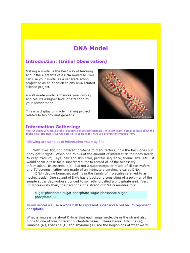 3D Dna Model Project Ideas This video demonstrates 3 Science Exhibition Project Model Ideas for Biology students. You will learn about How to make a DNA ... The major groove is wider than minor in this model. 11. DNA model Project ideas are based on the Watson and Crick model of ...