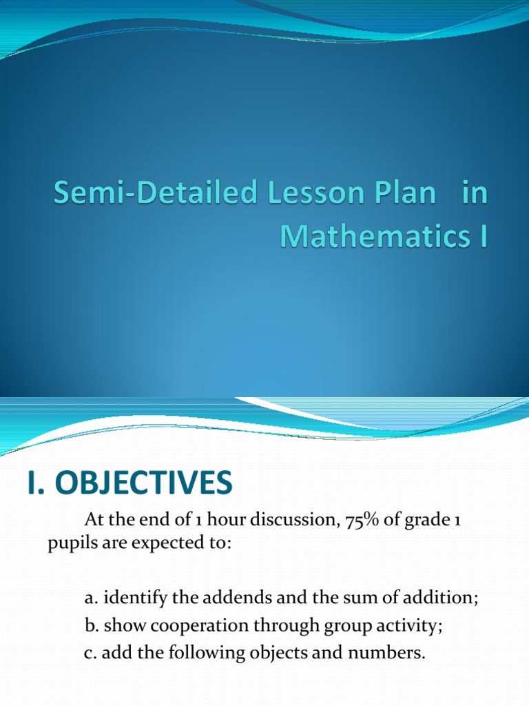 Complete Detailed Lesson Plan DLP for Grade 1-6 All Subjects Lesson planning is one way of planning instruction. Here in this page you will able to download 1st Quarter K-12 Detailed Lesson Plan for Grades 1-6 in all Subjects, just click on the download links below. Math First - DOWNLOAD.