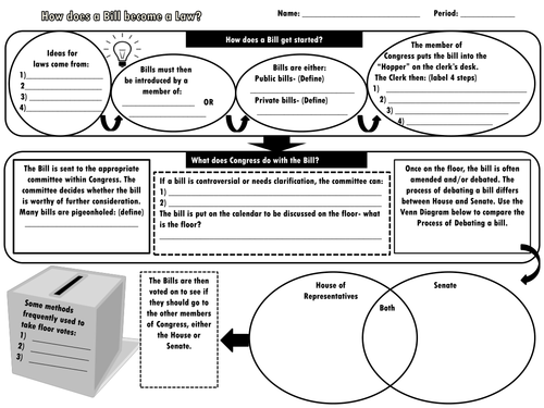 How a bill becomes a law worksheet answers. How does a bill become a law in the UK? | MyTutor A bill becomes a law once it is given royal assent by the Queen, and it has to be passed through a number of steps in order to do this. The UK government has two legislative chambers, the House of Lords and the House of Commons. How a Bill Becomes a Law Worksheet | Share My Lesson This worksheet begins by having students rephrase Article 1, Section 7, Clauses 1 and 2 from the Constitution (about how a Bill becomes a law). The worksheet continues to show a more detailed version of the process, including elements that were missing from the video (committee hearings... Worksheet How A Bill Becomes A Law Flowchart Bill Becomes Law Flowchart Worksheet Lesson Plan How A. 93 Flowchart How Bill Becomes A Law. 22 Best Teaching Government Citizenship Images Teaching. Chapter 12 Congress In Action. How a bill becomes a law The 9 steps a bill can go through before becoming a law, using the Genetic Information Non-Discrimination Act of 2003 as an example. Any member of Congress - either from the Senate or the House or Representatives - who has an idea for a law can draft a bill.