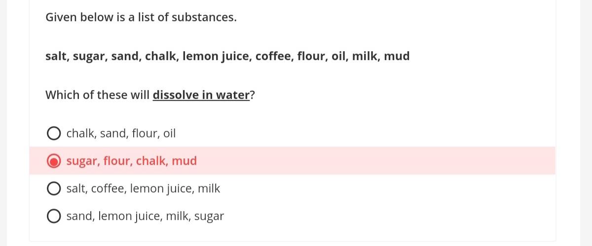 give two examples for soluble and insoluble substances in ... (a) Is it possible to separate a mixture of salt and sugar using water as the solvent? (b) How will you separate a mixture of iron fillings, chalk powder and common salt? Is it possible to separate a mixture of sand and sulphur using water as the solvent followed by filtration and evaporation? Give reasons. The following figure shows two processes.