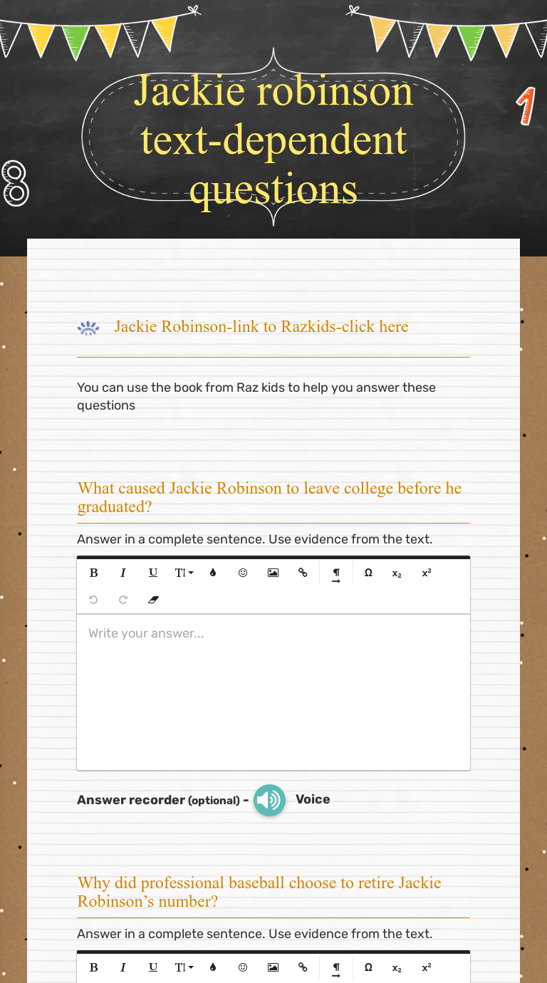 Text dependent questions worksheet