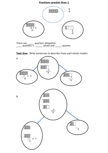 Fractions Greater Than 1 Year 4 | Teaching Resources Fractions Greater Than 1 Year 4. I made this resource for my Y4 class while teaching them about fractions greater than 1 and realising they were having trouble seeing the relationship between improper fractions and mixed numbers. I also used actual chocolate bars during the input to keep them engaged, which they certainly enjoyed eating once we ...