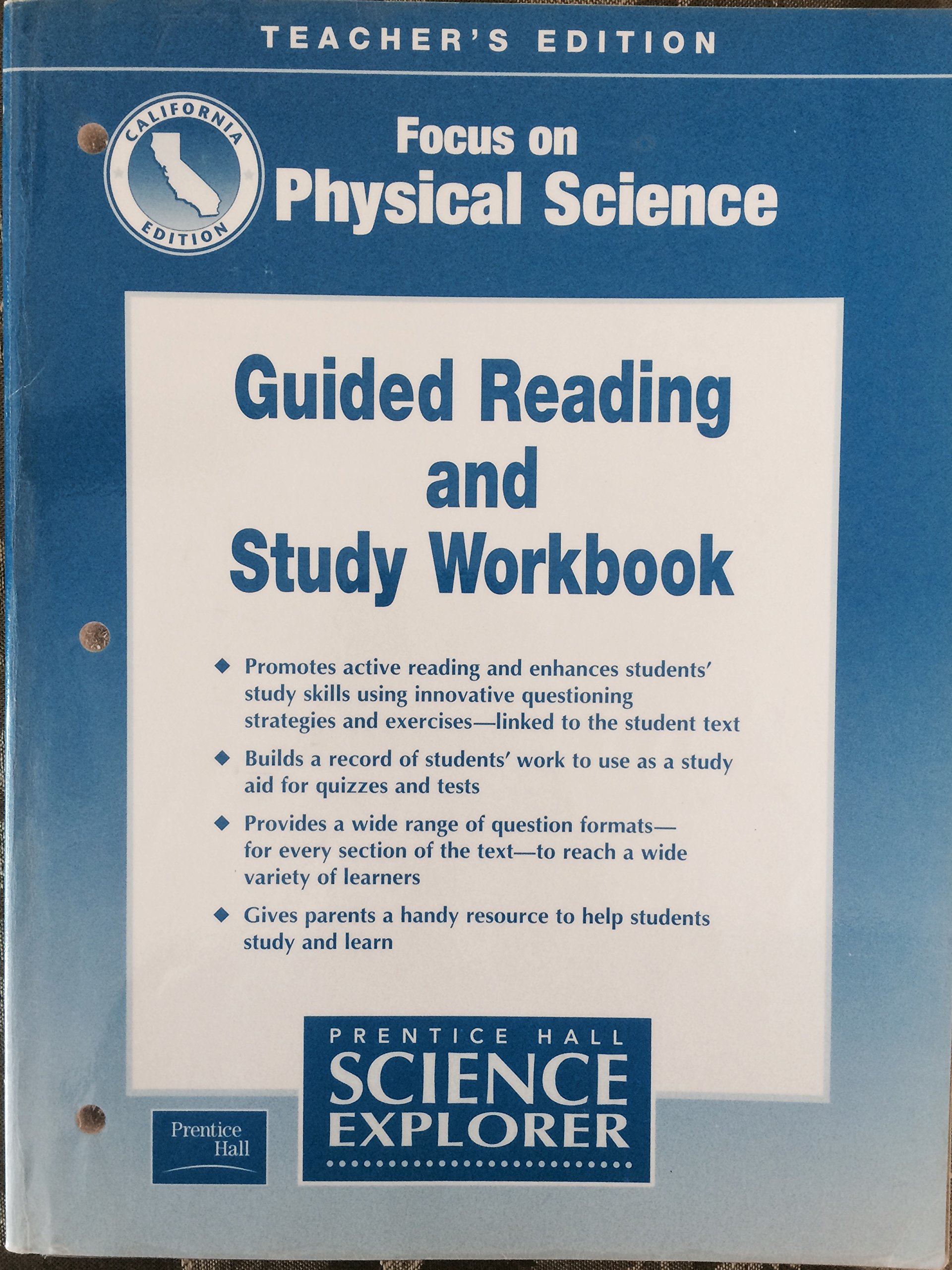 SCIENCE EXPLORER CHEMICAL BUILDING BLOCKS GUIDED READING ... We are a life-saving service for procrastinators! Our qualified experts dissertation writers excel at speedy writing and can SCIENCE EXPLORER CHEMICAL BUILDING BLOCKS GUIDED READING AND STUDY WORKBOOK 2005|PRENTICE HALL craft a perfect paper within the shortest deadline. If you have a last-minute paper, place your urgent order at any time and pick … PDF Guided Reading and Review Workbook - Scio School District Guided Reading and Review Workbook See us on the Internet PHSchool.com Guided Reading and Review Workbook Learn strategies for success in reading, testing, and writing for assessment Create your own study guide as you read Review main ideas and key terms Learn strategies for success in reading, testing, and writing for assessment Chemistry: Guided Reading and Study Workbook ... Our resource for Chemistry: Guided Reading and Study Workbook includes answers to chapter exercises, as well as detailed information to walk you through the process step by step. With expert explanations for thousands of practice problems, you can take the guesswork out of studying and move forward with confidence. Guided Reading and Study workbook: Pearson Education ... Guided Reading and Study workbook Paperback - Teacher's Edition, January 1, 2004 by Pearson Education (Author) 16 ratings See all formats and editions Paperback $29.99 21 Used from $3.55 6 New from $25.95 Mass Market Paperback $52.36 13 Used from $8.04 9 New from $52.33 Read more Language English Publisher Prentice Hall Publication date