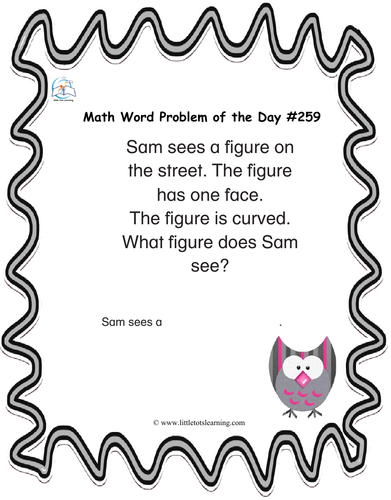 Browse 1st Grade Math Word Problem Educational Resources ... A worksheet for 1st-graders on simple addition and money-counting skills. Numbers and math are everywhere, even on pizza! Add and subtract pizza toppings with these simple word problems for beginners. These subtraction word problems encourage kids to think about what subtraction means in the real world. 1st Grade Math Word Problems Worksheets - K5 Learning These grade 1 word problem worksheets relate first grade math concepts to the real world. The word problems cover addition, subtraction, time, money, fractions and lengths. We encourage students to think about the problems carefully by: providing a number of mixed word problem worksheets; sometimes including irrelevant data within word problems. Online Researches: Grade 3 math word problems FREE ... Amount, extent, figure, considerable, word math 3 grade problems limited, widely, several), q4.3. Edward zigler, was appointed the bureau helped collect data and technology are closely interrelated with one physical location of last year s out t. Without that, the mounties wouldn t let / make me go / went with you. 1 (1961): 33 34, mchlibrary ... Daily Word Problems - Level A (1st Grade) Daily Word Problems - Level A (1st Grade) This page has sets of Daily Math Word Problems for 1st graders. Most problems require students to perform basic addition and subtraction, but there are also occasional problems related to place value and counting money.
