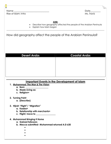 Rise Of Islam Teaching Resources | Teachers Pay Teachers Unit 6, Rise of Islam, takes questions and material ideas from the Glencoe World History textbook and outside/supplementary information. Dates range from pre-Muhammed to approx. 600 C.E. and cover geography, lifestyles, Muslim culture, and the religion of Islam basics. There are 61 questions, multiple choice, matching, and a map find.