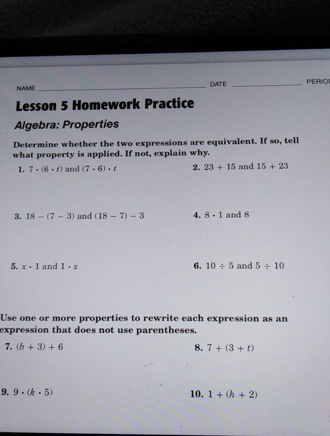 Lesson 5 Homework Practice Algebra Properties Answers The Lesson 5 Homework Practice Algebra Properties Answers bidding system is developed based on what is used in auctions, where a bid is the price participants offer for a good. Our experts will hear you call for help, asking, "write my Lesson 5 Homework Practice Algebra Properties Answers essay online," as soon as you place an order with us.