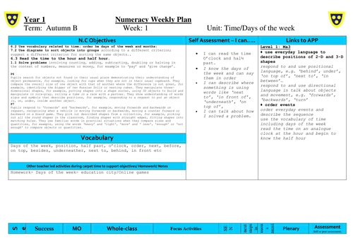 Days of the week lesson plan