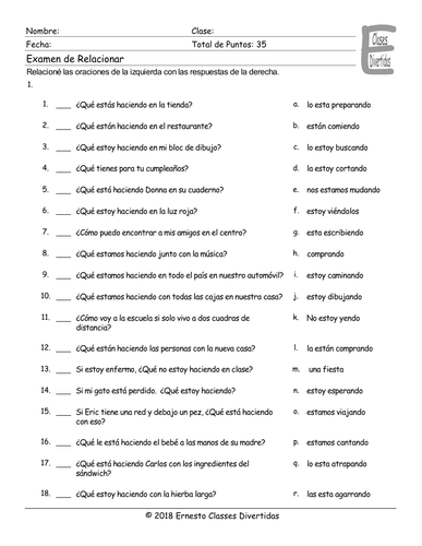 PDF Spanish Worksheet - The Present Progressive Tense Spanish Worksheet - The Present Progressive Tense The present progressive verb tense is formed with a combination of the verb 'estar' and the present participle. Forming the Present Participle 1. Drop the final two letters of the infinitive 2. Present tenses worksheets and online exercises Present tenses worksheets and online exercises. Language: English Subject: English as a Second Language (ESL) Order results: Most popular first Newest first. Present tenses revision. Grade/level: intermediate. by mada_1. Present perfect simple with for or since. Grade/level: B1. Worksheets - Spanish Grammar Lessons Spanish Grammar Worksheets The categories below provide explanations and free worksheets to practice these skills. Teachers can use these exercises in the classroom. Select a Spanish Grammar Topic below to learn about that topic. Then work on the skill by selecting one of the exercises at the bottom of the page. Adjectives Adjectives with Nouns