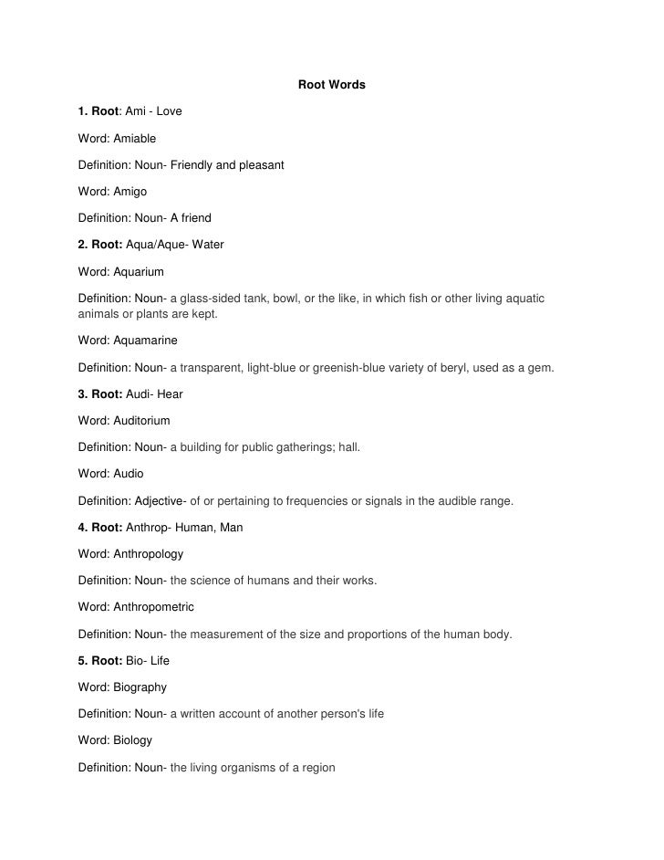 Port root word list. Examples of Root Words: 45 Common Roots With Meanings port - carry (portal, portable, transport) sect - cut apart (dissect, sectional, transect) sen - old (senator, senile, senior) sent - to feel (consent, sensation, sensing) tele - far (telephone, telegraph, television) vor - to eat (herbivore, omnivore, voracious) PDF Common Word Roots - Manhattanville College Common Word Roots There are hundreds of Latin word roots that are used frequently with prefixes and suffixes. This is only a partial list of the most frequently used roots. The roots with asterisks (*) are the 14 roots that provide clues to the meaning of over 100,000 words. Aud: to hear Wordlist for PORT root words Word List - LearnThat It's the richest and most interesting learners' dictionary available. Explore words through: Videos Images Pronunciations from around the world 100s of usage examples Idioms and limericks Interactive thesaurus Definitions from multiple sources Translations in 37 languages Synonyms, antonyms Words that rhyme Origin and root word information Word roots: The web’s largest word root and prefix directory word: Latin verbalize - to put into words; adverb - a word relating to a verb; proverb - a short saying that expresses a well-known truth. vers, vert: turn: Latin reverse - to turn around; introvert - being turned towards the inside; version - a variation of an original; controversy - a conversation in which positions are turned against each ...