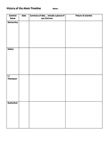 History of the Atom | Teaching Resources Introduce your students to the idea of the idea of the atom being developed over a period of time with this fact sheet and worksheet resource. It includes a worksheet which challenges the students to find information in the fact sheet as well as further opportunities to develop their knowledge through independent or teacher led investigation.