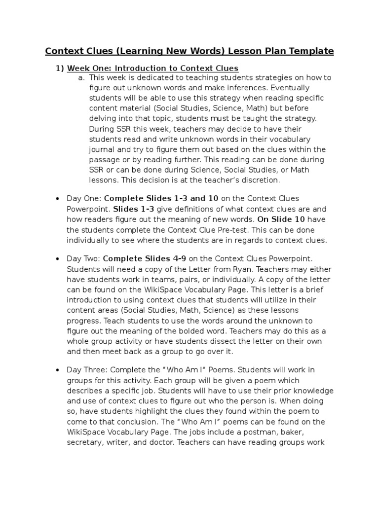 26 Context clues ideas | context clues, 3rd grade reading ... - Pinterest Mar 11, 2020 - Explore Amanda Stookey's board "context clues" on Pinterest. See more ideas about context clues, 3rd grade reading, teaching reading. Using Context Clues Lesson Plan - Google Docs TSW use context clues to determine the meaning of unfamiliar words during large group time by correctly stating what clues are given and correctly defining the unfamiliar word. TSW identify context...