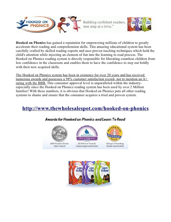 What is Phonics - Hooked on Phonics Hooked on Phonics is a proven, expert-designed, kindergarten-readiness Reading program. Become a stronger reader Hooked on Phonics helps your child receives systematic instruction in essential decoding skills. Become a confident reader. Hooked on Phonics has a proven method of teaching kids that guarantees reading success.