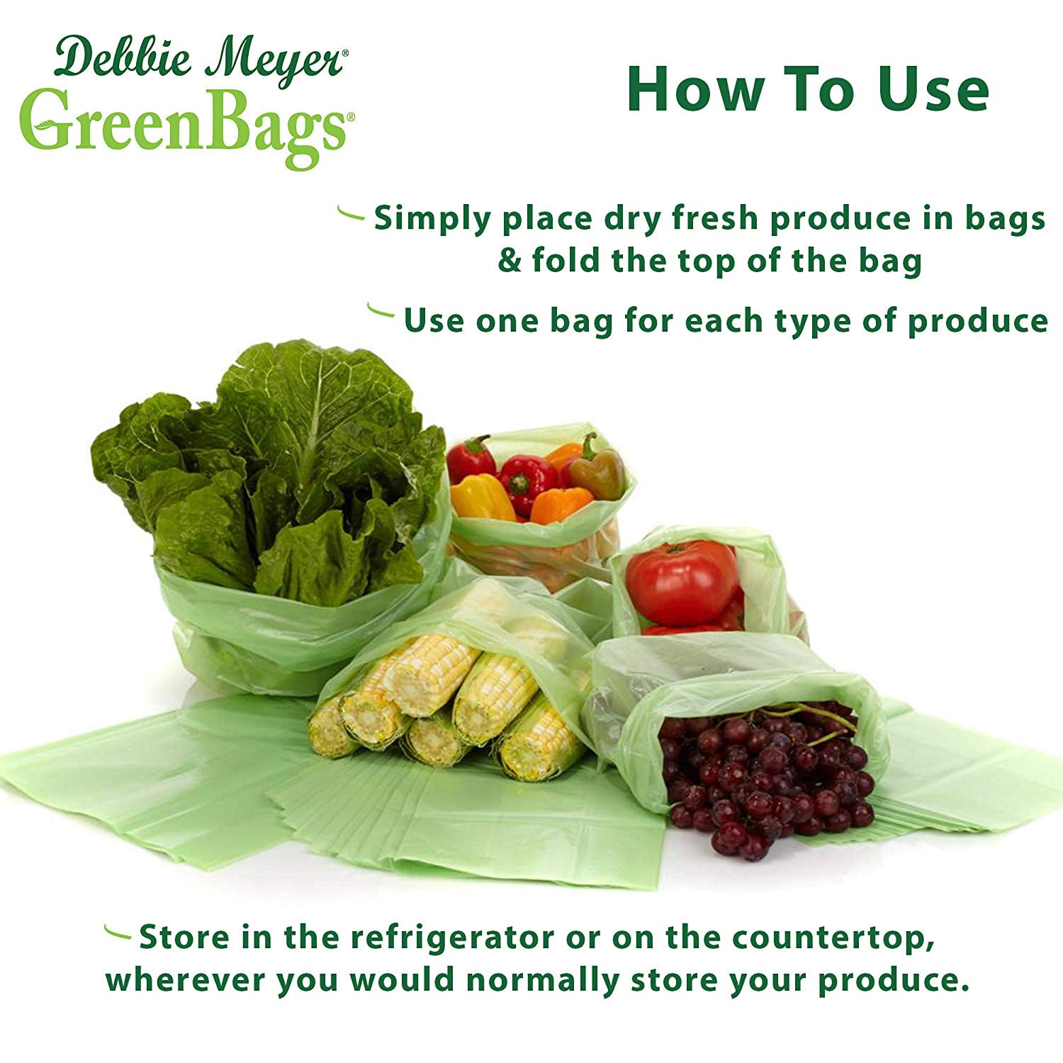 Debbie Meyer Green Bags™ - Bed Bath & Beyond With Debbie Meyer's green bags, you waste less produce which in turn saves you money. Green bags keep produce fresh approximately 30 days and reduce vitamin loss by 50% by preventing excess moisture. As Seen On TV Set includes 8 medium bags 8 Large bags 4 extra large bags Each bag can be reused up to 10 times skuId: 14948821 features Construction