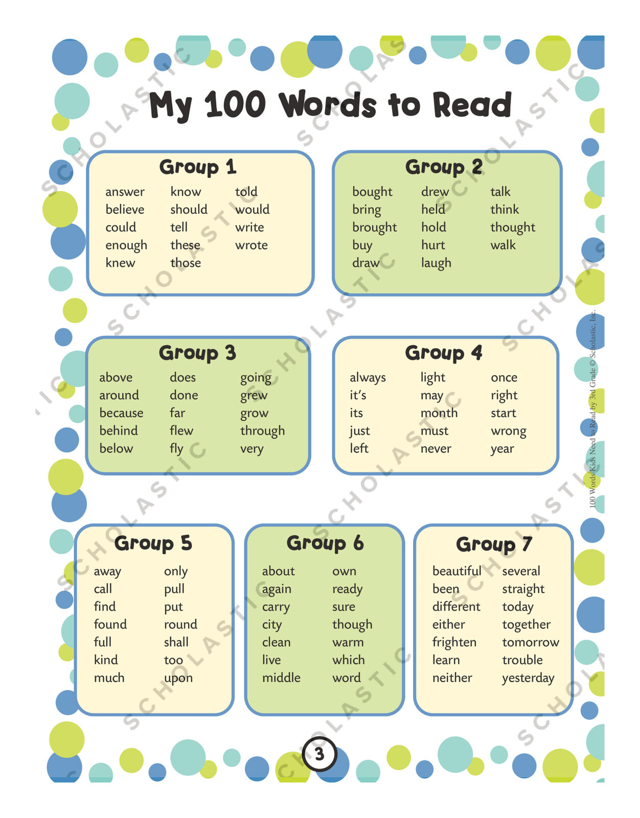 3rd grade reading words. Search 3rd Grade Reading & Writing Lesson Plans - Education Browse 3rd Grade Reading & Writing Lesson Plans. Award winning educational materials designed to help kids succeed. Start for free now! 3rd Grade Spelling Words, Worksheets & Activities 3rd grade spelling words - 200 words that third graders learn because they will be using them this year! These words are used throughout my games, worksheets and activities. Your students will find them throughout their subject matter texts as well. Dolch words - Complete list of Dolch sight words for preprimer - 3rd grades. By third grade ... 1st Grade Spelling Words, Worksheets and Activities 1st grade sight words - These 40 Dolch words are the most important words for first graders to read instantly and spell easily. We also have the complete Dolch Word list for preprimer through 3rd grade levels. Find two sets of flash cards for first grade sight words here. The Guide to 3rd Grade: Reading and Writing | Scholastic ... Aug 13, 2020 · As 3rd graders explore a greater range of books and longer texts, they become more fluent readers and learn to read, define, and pronounce complex words. To build reading skills, your 3rd grader: Reads multi-syllable and grade-appropriate, irregularly spelled words (ask your child’s teacher for a list of these words).