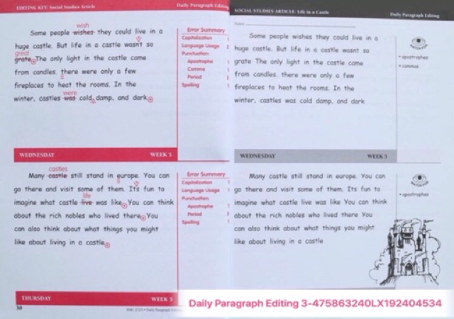 Daily Paragraph Editing | Rainbow Resource Daily Paragraph Editing. This series gives students a manageable paragraph of editing practice each day. Each book consists of 36 weekly lessons. Monday - Thursday daily editing worksheets are four paragraphs (one each day) on related subject material filled with capitalization, punctuation, spelling, and language usage errors.
