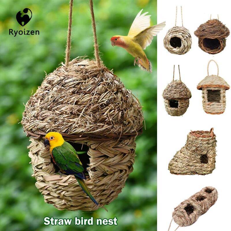 Handmade Woven Straw Bird Nest Cage for Parrot Hamster Small Pets Bird Animals Cage House Home Hanging Ornaments