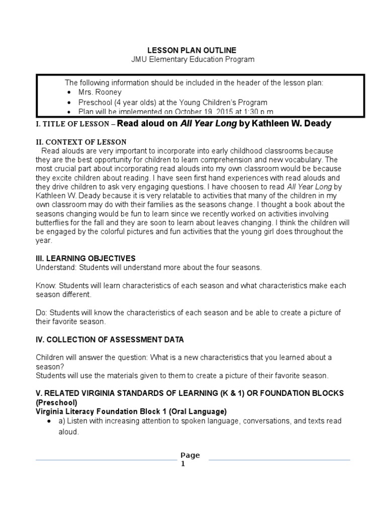 Read aloud lesson plan. Read Aloud Lesson Plan | PDF | Lesson Plan | Reading ... - Scribd The purpose of this lesson plan is to give students experience in planning and presenting a READ ALOUD lesson that includes a before-reading activity, the read aloud, and an after-reading, or follow-up activity. Choose a book that you will read aloud to the students (small group or whole group). Your lesson plan must be written in the provided Planning an Interactive Read Aloud Lesson - The Colorful Apple