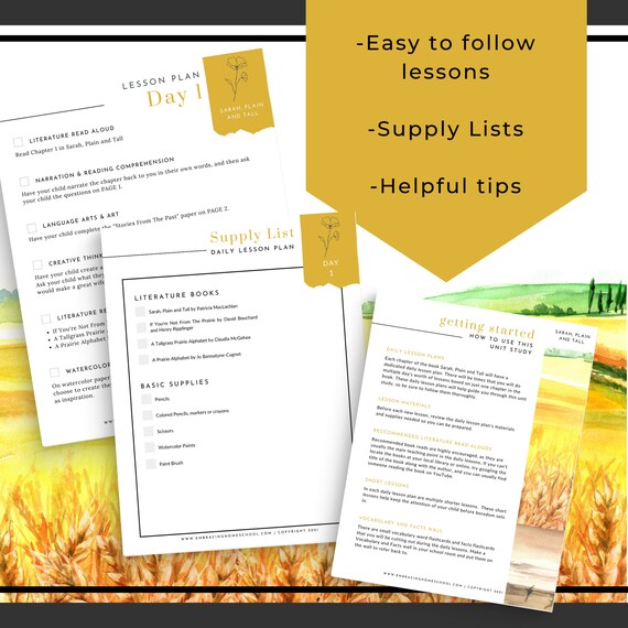 Sarah plain and tall lesson plans. Sarah Plain and Tall Summary & Activities | Storyboard That Sarah, Plain and Tall Summary. The story opens with Caleb, a young boy, asking his sister, Anna, about their mother. Their mother had passed when Anna was young, and Caleb was just born. Caleb and Anna both miss their mother and wonder why their father, Jacob, doesn't sing anymore. Jacob says he has forgotten the songs, but there may be a way ... Sarah, Plain And Tall Worksheets & Teaching Resources | TpT Sarah, Plain and Tall by Patricia MacLachlan, is a novel about a girl named Anna whose mother died the day after her brother, Caleb was born...and much, much more! ... Sarah, Plain and Tall. It is meant to be used with the Sarah, Plain and Tall Lesson Plans and Activities that are available in my TpT store. Feel free to edit/adjust this file to ... English Lesson Plans: Activities for Sarah Plain and Tall Book One type of activities for Sarah, Plain and Tall book are writing activities. These activities help students comprehend the book and work on their writing skills at the same time. You can also work in a little history/social studies. 1. This novel by Patricia Machlachlan takes place during the 19th century before there was email or text messaging. Sarah Plain and Tall Novel Study and Activities for Grade Three Activities While Reading the Novel. While in the middle of the Sarah, Plain and Tall unit for grade 3, students can do various learning activities: This is relatively short book with nine chapters. After students finish a chapter, they can write a summary of the main points. Patricia Maclachlan's book is perfect for working on summaries since ...