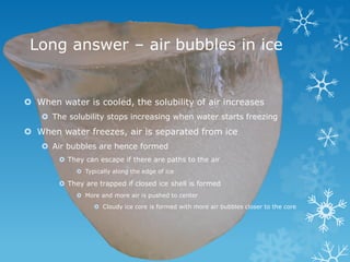 Why Does Cold Water Melt Ice Better than Hot Water? | Sporcle Blog Aug 13, 2019 ... Intuitively you may think that hot water will always melt ice faster than a colder counterpart, but this isn't always the case. Throw a few ice ... Why does ice melt faster in water( at room temp ... - PhysLink.com Alternatively, you can just use more collisions. The water is much more dense than the air, with many more particles per cubic millimeter. Thus even though the ...
