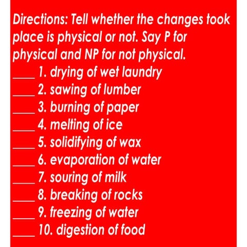 Chemical Change vs. Physical Change - Chemistry LibreTexts Jan 30, 2023 · These are not definite indicators; a chemical reaction may not be occurring. A change in color is not always a chemical change. If one were to change the color of a substance in a non-chemical reaction scenario, such as painting a car, the change is physical and not chemical. This is because the composition of the car has not changed.
