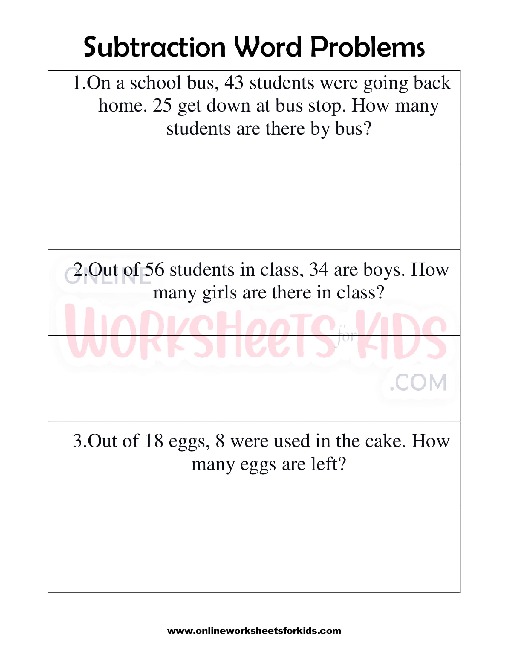 Subtraction Word Problems Worksheet First Grade - Lesson Tutor