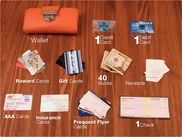 What's in Your Wallet? - List Challenges What's in Your Wallet? People have all kinds of stuff in their wallet (and I mean in a wallet - not in a handbag or a backpack). How many of these items do you have? 11,543 users · 44,655 views made by Nora avg. score: 17 of 77 (22%) required scores: 1, 11, 14, 18, 23 list stats leaders vote print comments How many do you have?