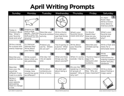 365 Daily Writing Prompts for Kids | Imagine Forest ️ Most of these prompts have been written for middle school students. However, they can also be used for students in the 2nd, 3rd and 4th grades with extra support. We have also tried to include international holidays and famous birthdays for each month. This way the writing prompts can be both educational and inspirational! 47 Second Grade Writing Prompts - Teacher's Notepad 47 Writing Prompts for Second Graders: I had the most amazing dream… My best holiday was… I woke up and heard an exciting sound… The most fun I ever had at the beach… What made me laugh the most at the water park was… If I was a puppy, I would… I rode my bike in the… One night I was too excited to sleep because… I met my hero…
