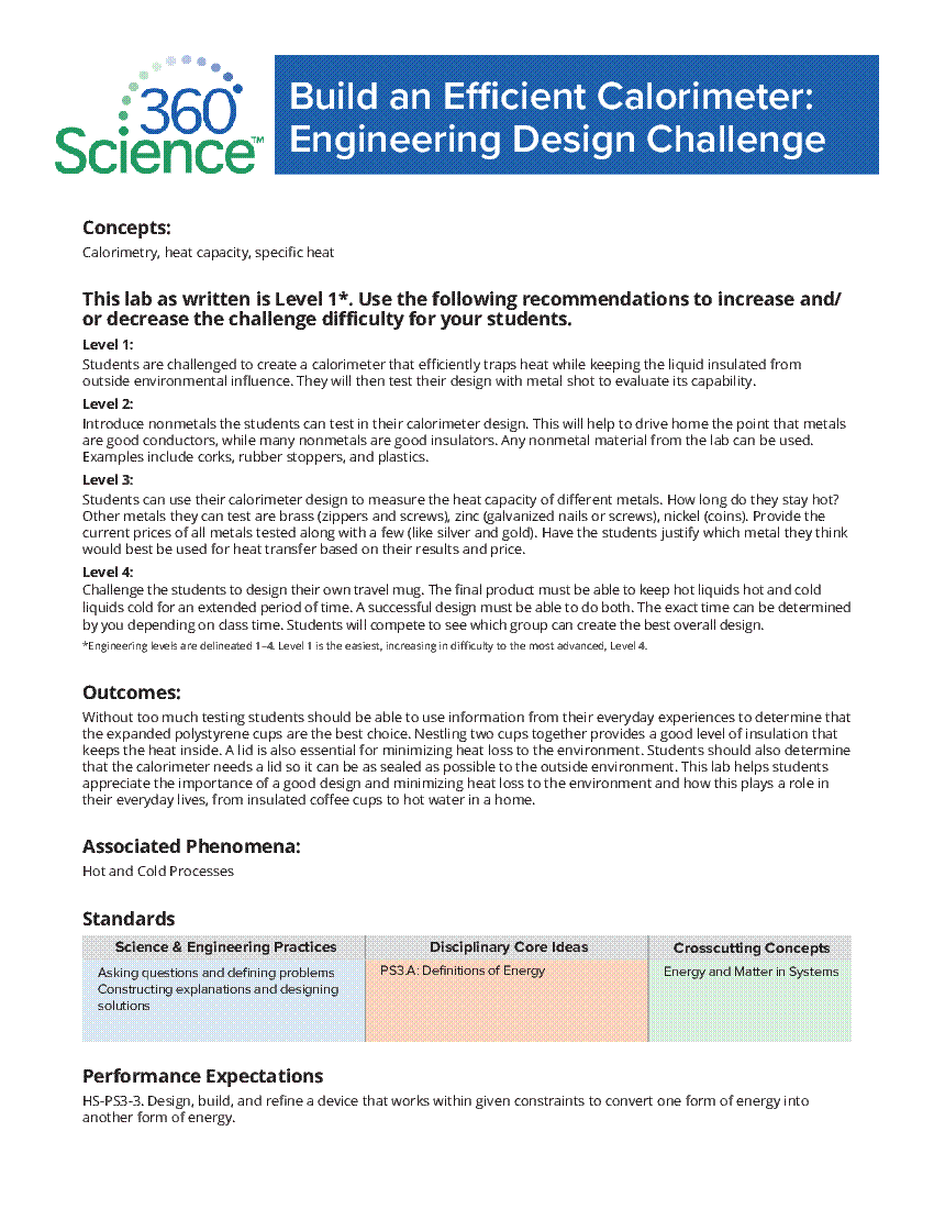 Coffee Cup Calorimetry Lab | Study.com To build the calorimeter, take one styrofoam cup and place it inside the other. Next, use your Exacto knife to cut the cardboard into a circle that fits ... DIY Calorimeter and 'Leslie Can' - Instructables I will show you how to make DIY calorimeter and home version of 'Leslie cube'. Both pieces of equipment are necessary to complete GCSE practicals in UK, ... Setting up a Calorimeter - YouTube How to Make a Simple Calorimeter - Sciencing Measure out 100 ml of water using the graduated cylinder and pour it into the soda can. Take the starting temperature of the water. Slip the ...