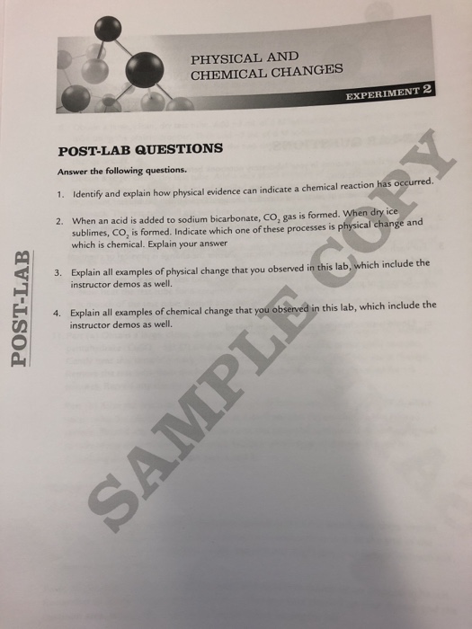 Solved PHYSICAL ANI CHEMICAL CHANGES EXPERIMENT 2 POST-LAB ...