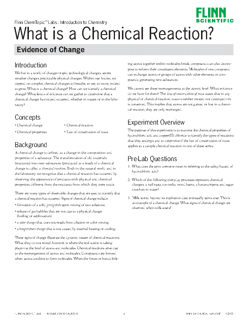 360Science™: Introduction to Chemical Reactions | Flinn ...