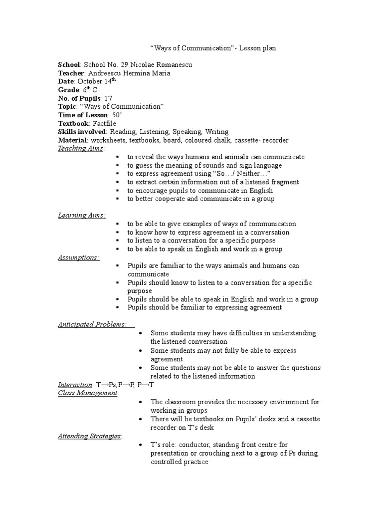 We All Teach SEL: Communication Activities and Tools for Students Building SEL (social and emotional learning) skills such as communication requires face-to-face interactions, meaningful discussion, and reflection. Edtech is no complete substitute for that, but there are tools that can supplement the development of character in the classroom and at home. Communication isn't just about using good grammar and ... Results for middles school speech communication lesson plans This is a lesson plan suitable for Middle or High School students & is an easy project to have on hand in case of emergencies. Students will need access to the internet & will either individually or with a partner, choose a speech to analyze! They will then will answer 10 long answer questions about the speech.