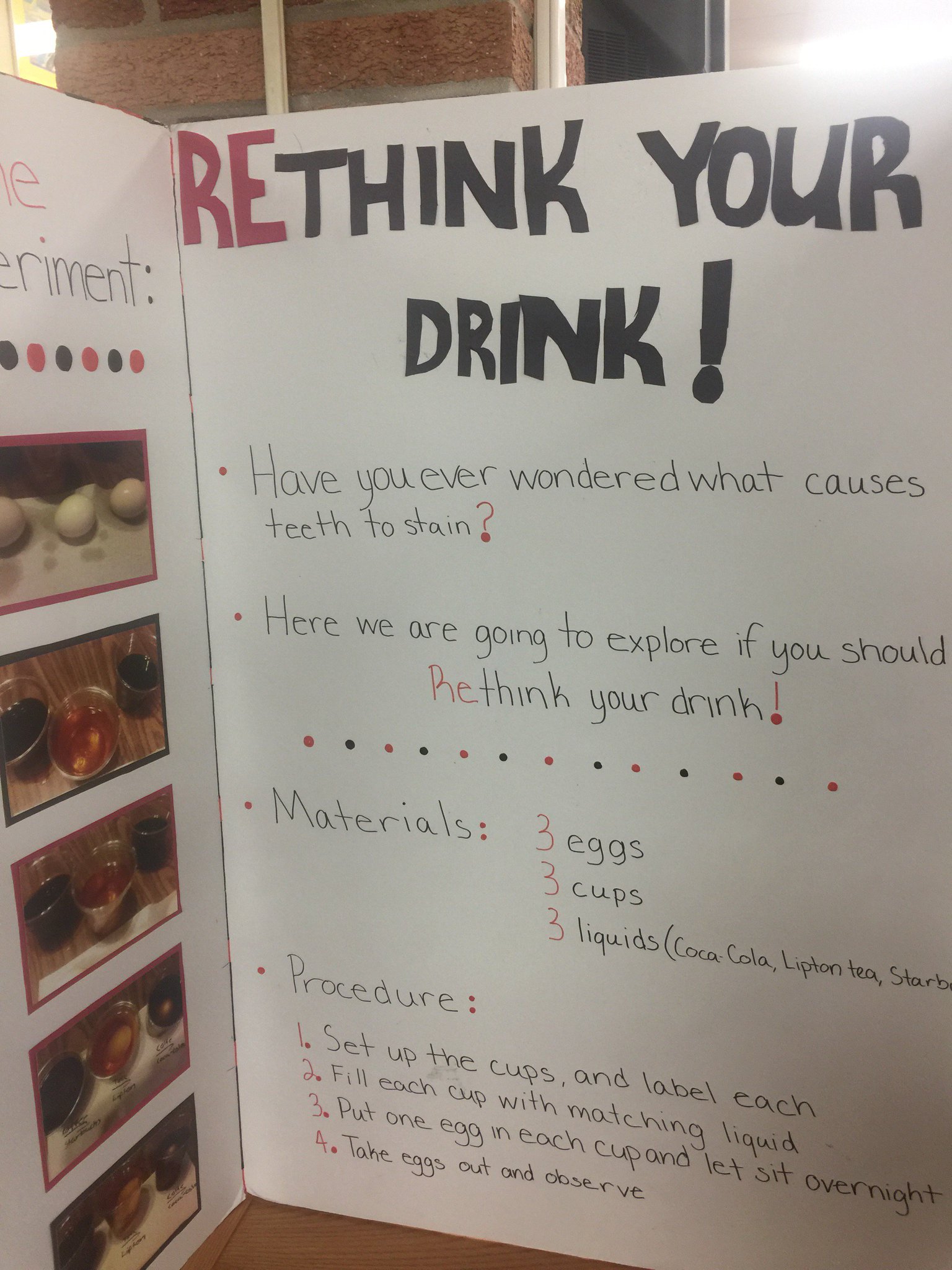 Elementary Science Fair Projects - Pinterest ReThink Your Drink & Sugar Elementary Science Fair Projects, Science Fair Experiments, Science Fair. More like this. joell_pratte · JoEll Pratte. Easy Science Fair Project Pack: Rethink What you Drink Sep 11, 2019 - If you are looking for an easy but great science fair project, you have come to the right place. Rethink What You Drink is very simple and can be completed FAST! You only have to observe the eggshell for 3 days. So if you are in a time crunch or just want to finish quickly, this project is perfect!I... ReThink Your Drink by bridgette miller on Prezi Next ReThink Your Drink · 1.First read the nutrition labels on the back of each of your drinks and write it down. · 2.Get out your sugar and your measuring scale. · 3. Rethink your Drink!!! | Science fair projects, Science ... - Pinterest Sugar Science Fair Project - help your kids do THIS! See how to make an amazing Sugar Science Fair Project where soda and juice are boiled. Your child can do ...